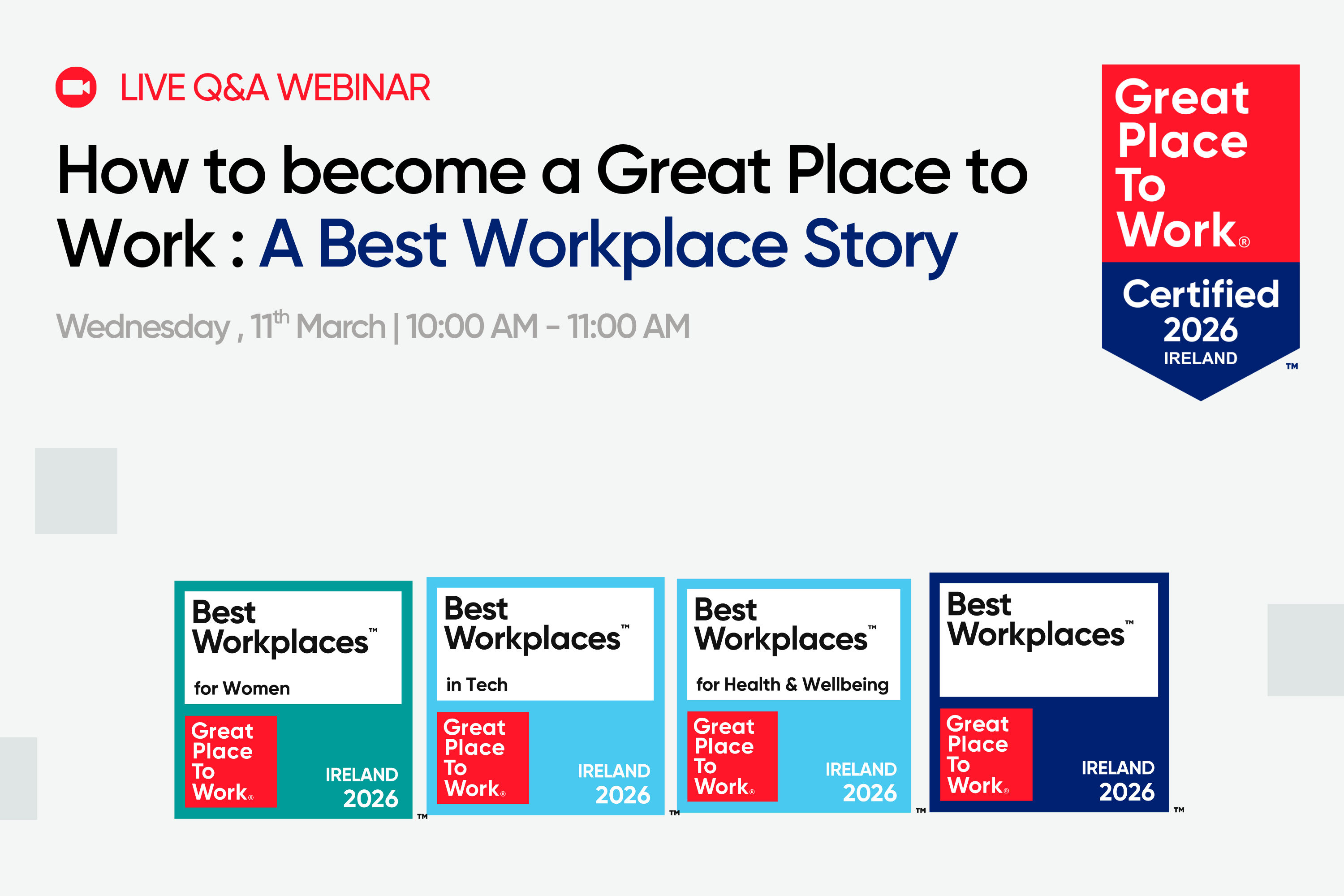 Join Great Place to Work experts, alongside a leader from one of Ireland’s Best Workplaces, for a practical discussion on how employee feedback data can be turned into real, measurable cultural change on Wednesday, 11th March, 10 A.M. to 11 A.M.