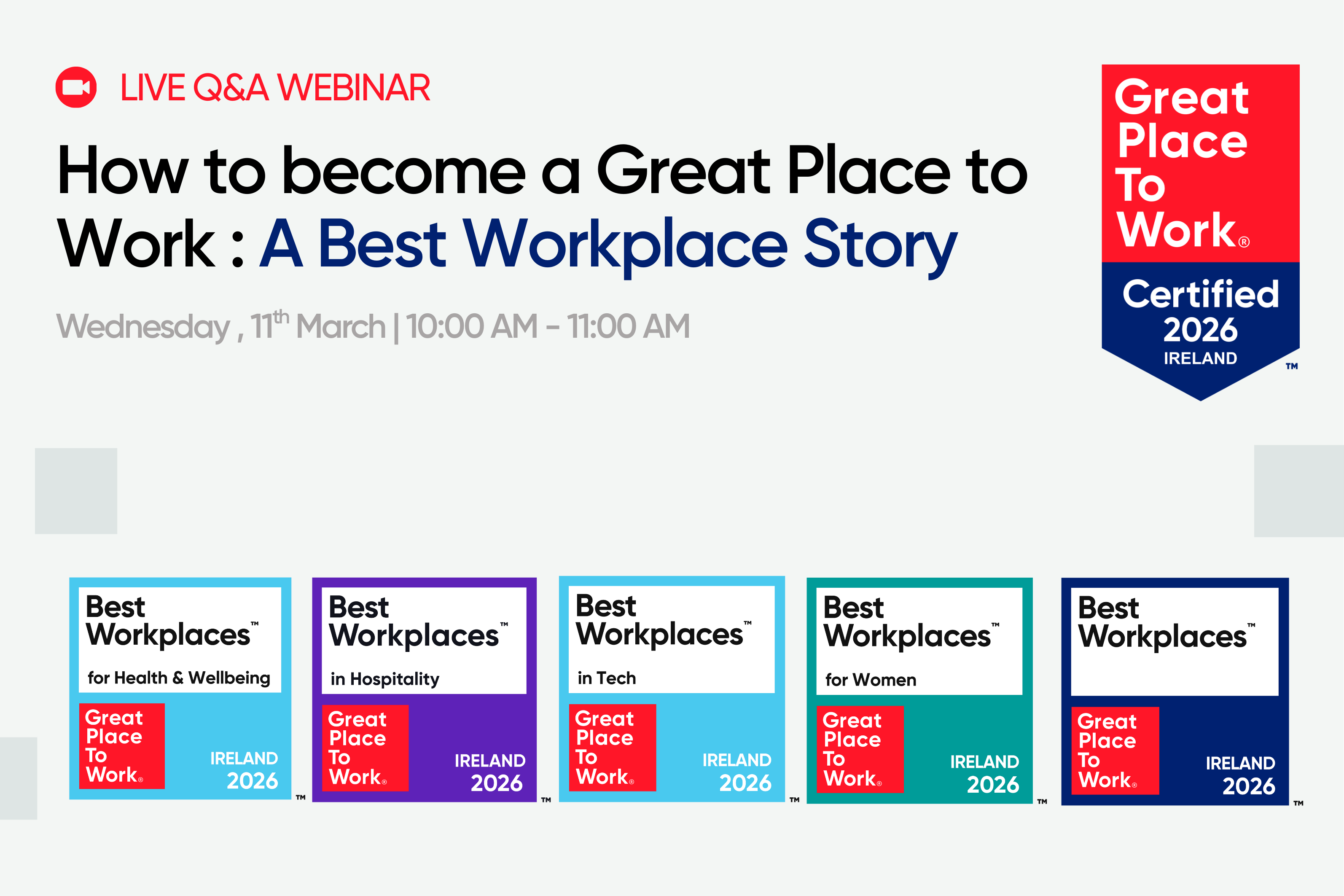 Join Great Place to Work experts, alongside a leader from one of Ireland’s Best Workplaces, for a practical discussion on how employee feedback data can be turned into real, measurable cultural change on Wednesday, 11th March, 10 A.M. to 11 A.M.